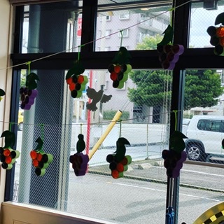 園にはシャインマスカットや巨峰をイメージした美味しそうなぶどうが並びました🍇