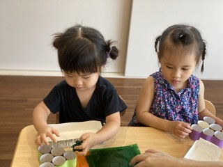 セロハンを丸めたり筒の中に入れることで指の運動や腕を押す力の運動につながります。