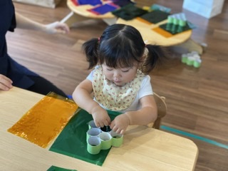 セロハンを使ったので、普段触れる機会の多い紙とは違いシャカシャカと音がしたり、感触、透き通る色などなど、画材の違いを楽しむことができました。
