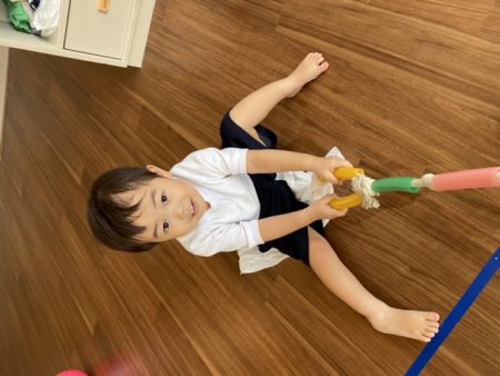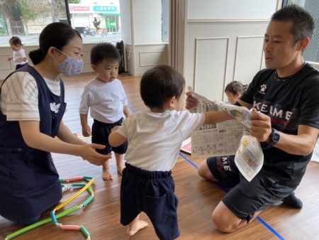 続いて引っ張った新聞紙に向かってアンパーンチ👊をしました。